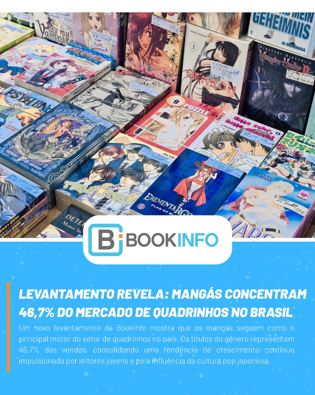 Levantamento revela: mangás concentram 46,7% do mercado de quadrinhos no Brasil Um novo levantamento da Bookinfo mostra que os mangás seguem como o principal motor do setor de quadrinhos no país. Os títulos do gênero representam 46,7% das vendas, consolidando…